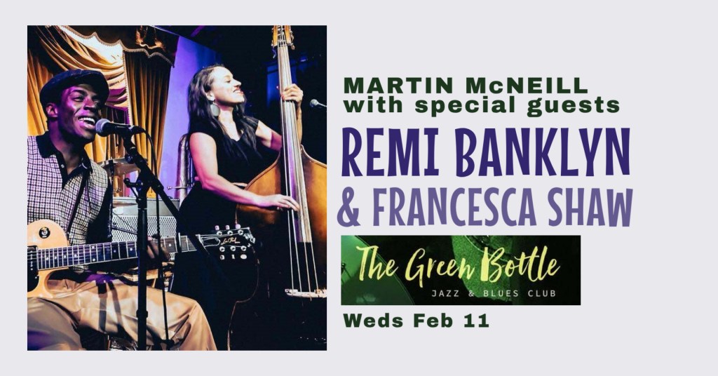 Martin McNeill plays with great guests every Wednesday at the Green Bottle, 1 Rectory Grove, Leigh-on-Sea, SS9 2HA (upstairs at the Greedy Breakfast).