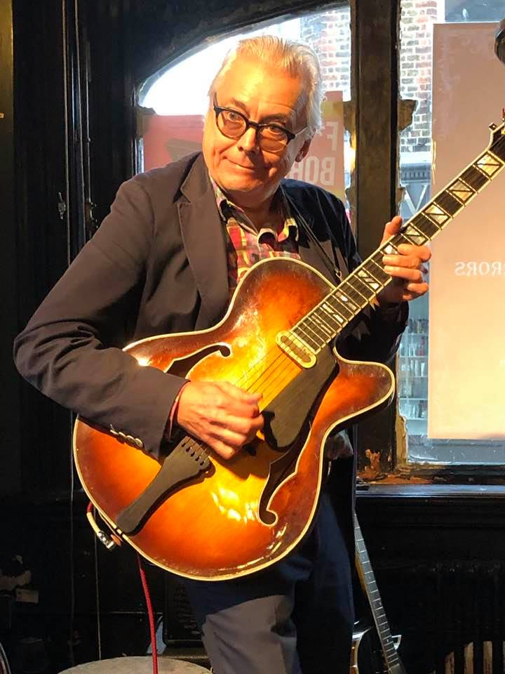 His music is largely framed around his prowess as a slide guitarist and his ability to evoke almost lap steel tones from his archtop.